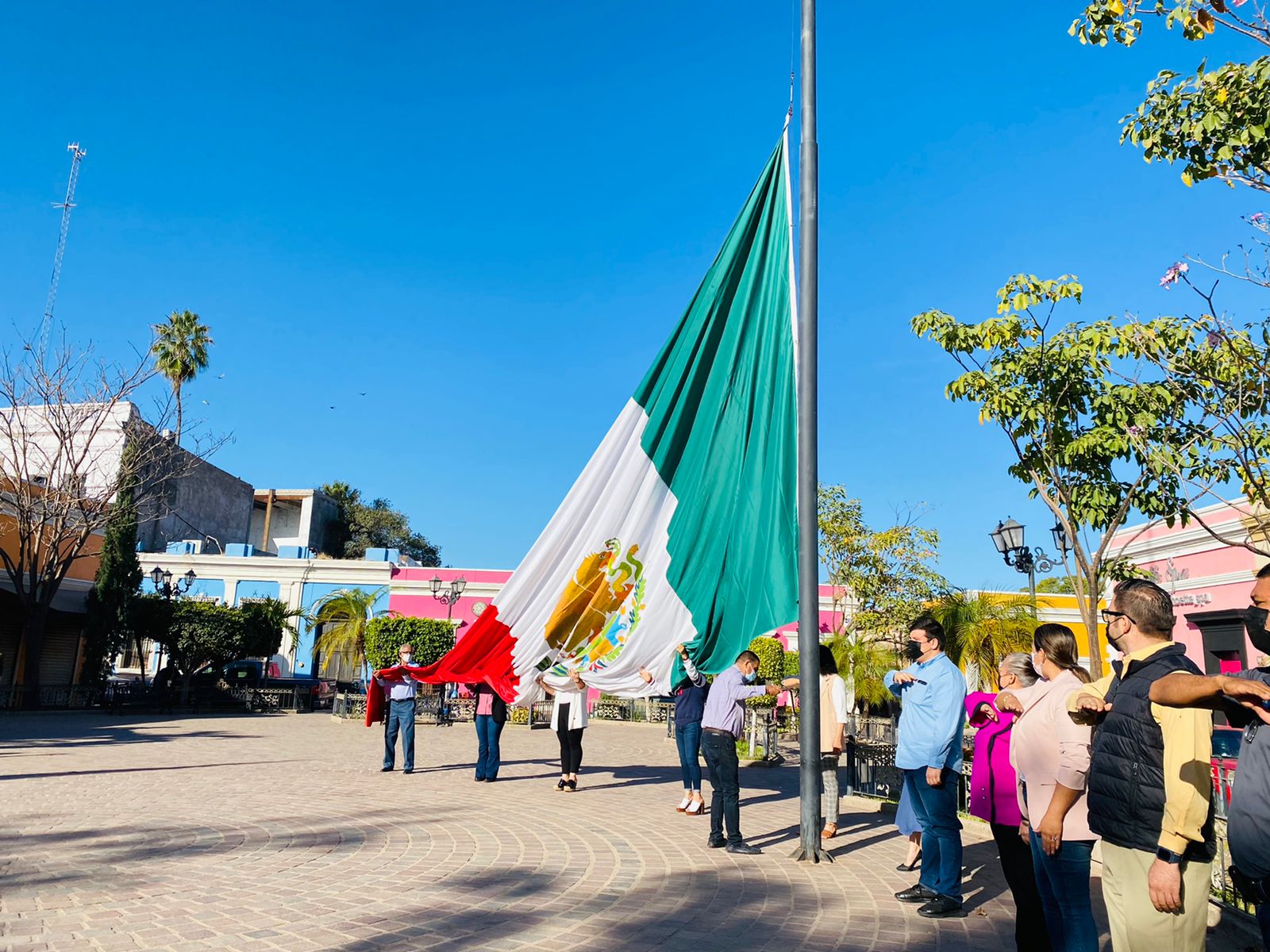 Para ello, los recintos cívicos oficiales como son la Plazuela Tres Grandes y el Hemiciclo General Rafael Buelna Tenorio; fueron las sedes en donde funcionarios, regidores y servidores públicos del H. Ayuntamiento; se dieron cita para rendir los honores correspondientes al entonar el himno nacional e izar banderas en señal de orgullo y patriotismo.