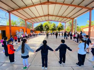 Precisamente el día de hoy la alcaldesa estuvo en la Escuela Primaria Venustiano Carranza de la cabecera municipal, a la cual asistió en compañía de los titulares de las áreas municipales del Instituto del Deporte y Cultura Física, del Instituto de la Mujer y el Departamento de Vinculación Educativa, para implementar actividades enfocadas en la parte socioemocional y con ello en fortalecimiento del aprendizaje integral, además del fomento de los valores universales.