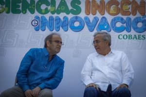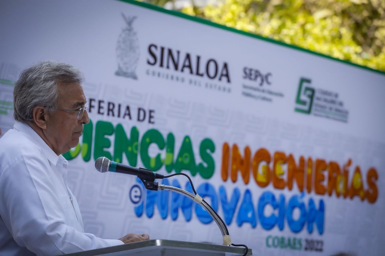 • El gobernador Rubén Rocha asistió a la Séptima Feria de Ciencias, Ingenierías e Innovación Cobaes 2022 en el plantel Cobaes 26, en la que ofreció a Santiago Inzunza, director general del Colegio de Bachilleres un apoyo inicial de 20 millones de pesos para el arreglo de laboratorios científicos y de las necesidades que se tengan dentro de cada uno de los planteles.